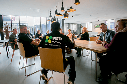 Na het rondetafelgesprek gingen de aanwezigen in gesprek met leidinggevenden Agnes Hengeveld en Bertie van de Kamp. Op de vraag wat er nodig is om mensen met een arbeidsmarkt succesvol in te zetten gaven zij hetzelfde antwoord; tijd. Voldoende tijd om mensen te begeleiden, instructies te herhalen en medewerkers de ruimte te geven als ze vastlopen in het werk is essentieel. Volgens Agnes en Bertie is daar binnen de samenwerking tussen de gemeente Nijmegen, het Werkbedrijf Rijk van Nijmegen en SMB Willems begrip voor. Dat maakt de samenwerking tot een succes.